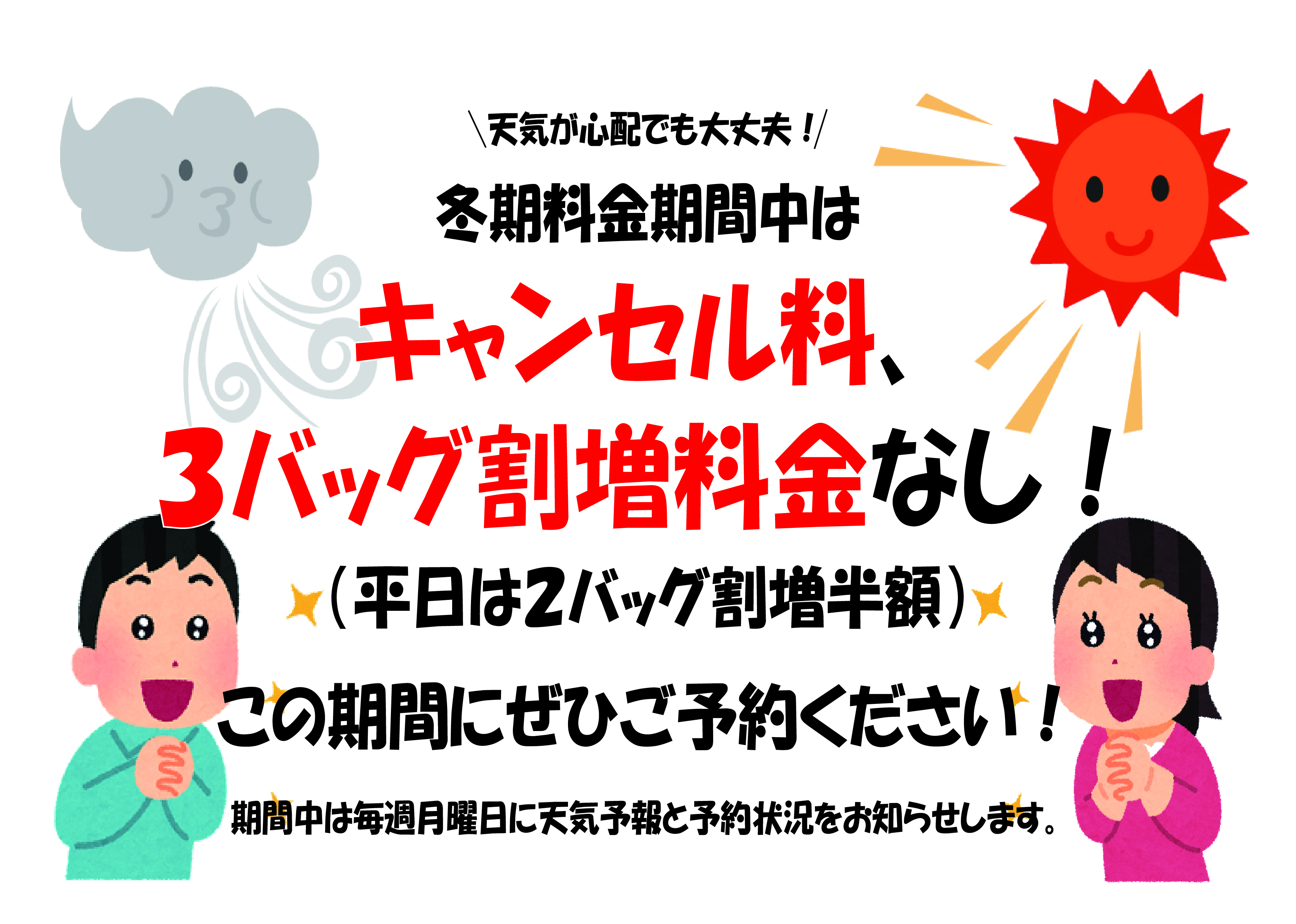 冬期料金期間中はキャンセル料、3Bの割増なし!