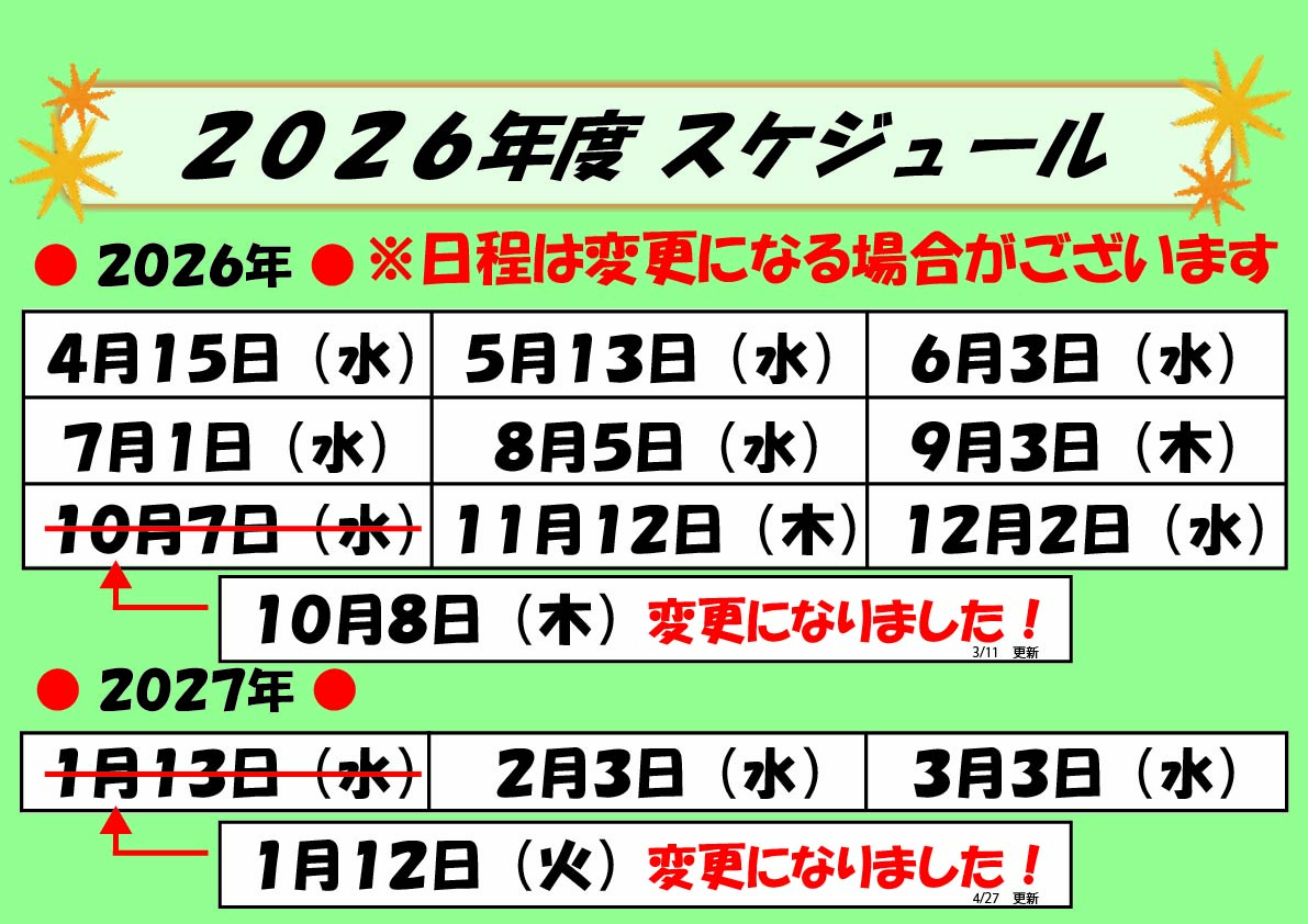 2027年1月の日程が変更になりました。
