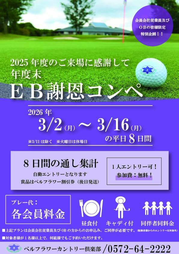 2025年度 EB謝恩コンペの成績発表です。皆様のご参加、誠にありがとうございました。
